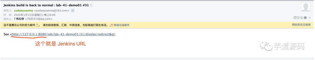 Jenkins 支持配置邮件通知,在构建成功(Success)、构建失败(Fail)、构建不稳定(Unstable)时,发送相应的邮件。