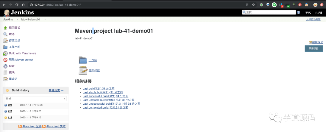 至此,我们已经完成了一个 Jenkins 部署任务的配置的学习。虽然说,整个过程可能有点冗长,加上艿艿是一个啰嗦的人,但是作为一个“配置工程师”,一回生二回熟。