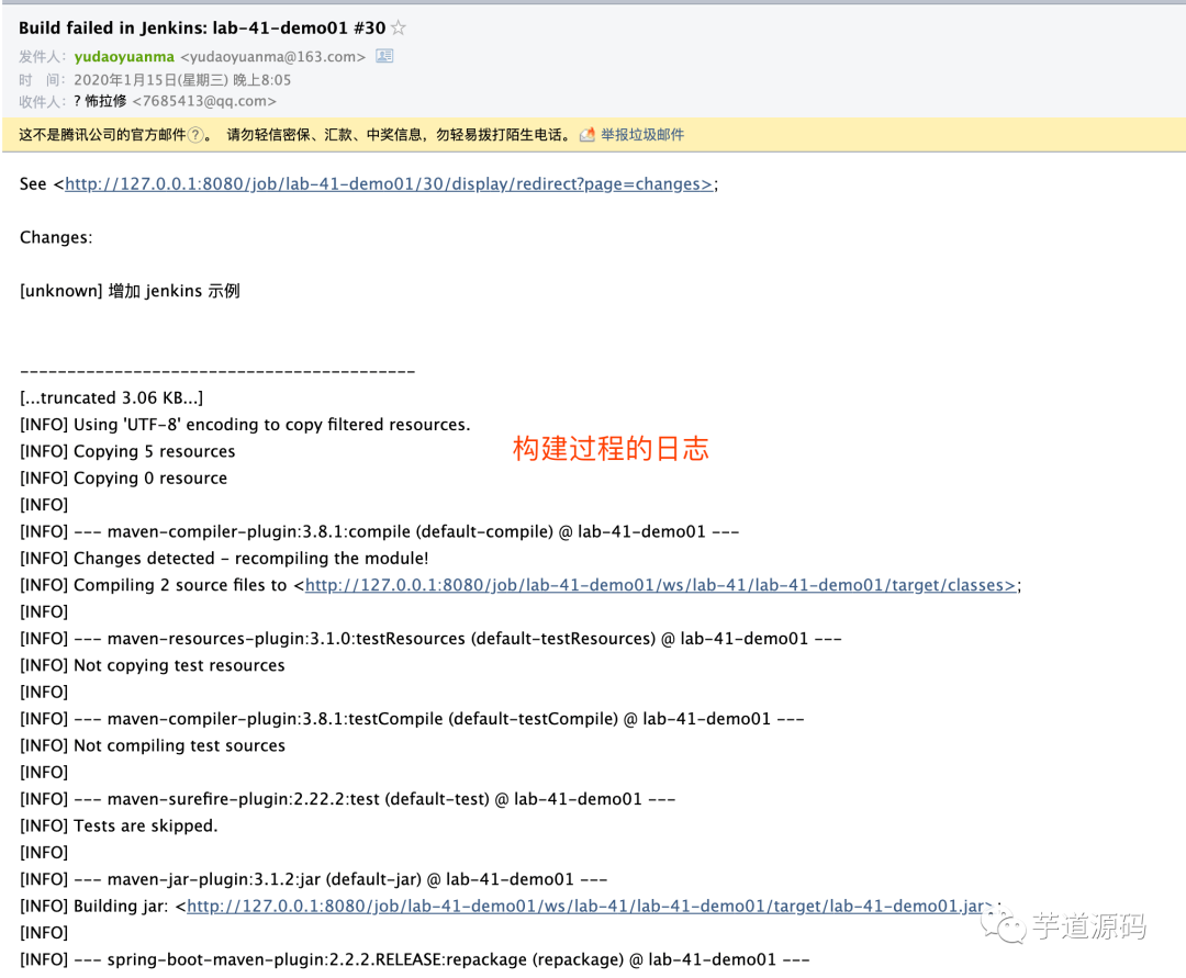 因为本文主要以 Jenkins 为主,所以并未介绍 Java 项目打包等等内容。胖友可以马上去看看《芋道 Spring Boot 持续交付 Jenkins 入门》文章,艿艿会在该文中,分享更多 Spring Boot 如何打包,整个部署过程中如何更好的和 Nginx 健康检查做好结合。一定一定一定要看,哈哈哈。