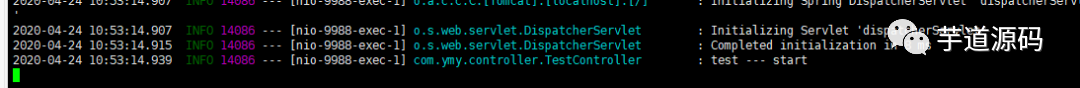2020-04-24 10:53:14.939 INFO 14086 --- [nio-9988-exec-1] com.ymy.controller.TestController : test --- start