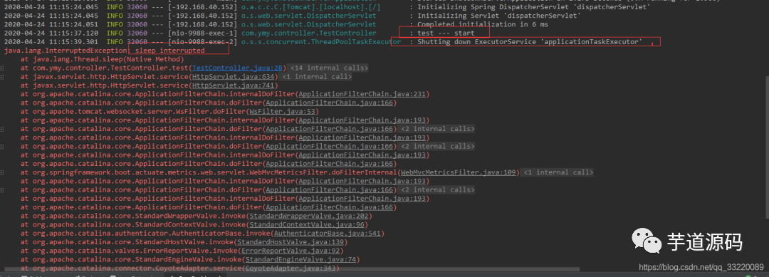 test — end被执行了,不过在停止线程池的时候还是调用了线程的interrupt方法,导致sleep报错,这三种方式都可以比较优雅的停止springboot服务,如果我项目中存在线程休眠,我希望10秒以后再停止服务可以吗?肯定是可以的,我们只需要稍微做点修改就可以了。