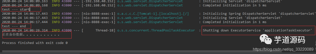 2020-04-24 10:54:02.450 INFO 14086 --- [extShutdownHook] o.s.s.concurrent.ThreadPoolTaskExecutor : Shutting down ExecutorService 'applicationTaskExecutor'