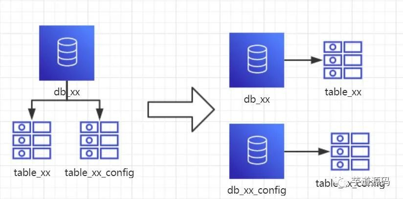 1、概念:以表为依据,按照业务归属不同,将不同的表拆分到不同的库中。 2、结果: