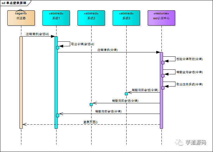 sso认证中心一直监听全局会话的状态,一旦全局会话销毁,监听器将通知所有注册系统执行注销操作