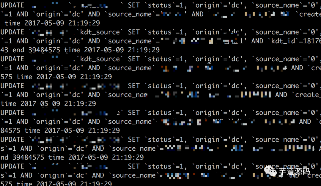 我赶紧登上服务器,查看了这段时间的binlog,发现了大量的update tablename set source_name=0的语句,利用binlog2sql进行了解析,项目地址:binlog2sql