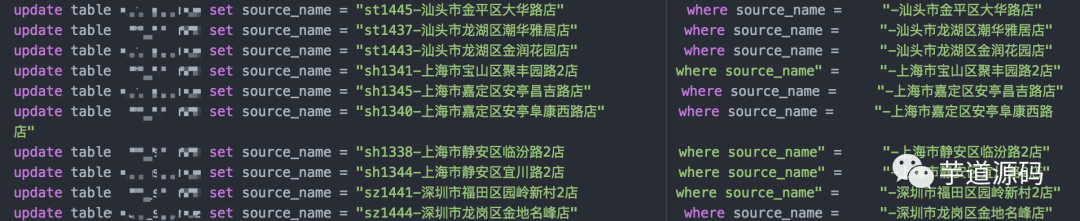 然后开发执行了剩下的SQL,都是和上面的SQL一样,将地址进行更新。执行完成后,开发懵逼了,发现source_name都变成了0,开发赶紧给我打电话说: