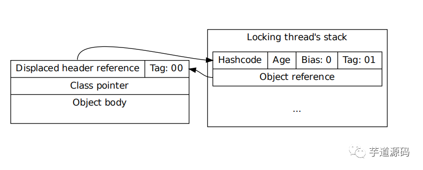 1.在线程栈中创建一个Lock Record,将其obj(即上图的Object reference)字段指向锁对象。