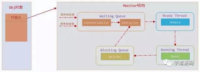 其中cxq ,EntryList ,WaitSet都是由ObjectWaiter的链表结构,owner指向持有锁的线程。