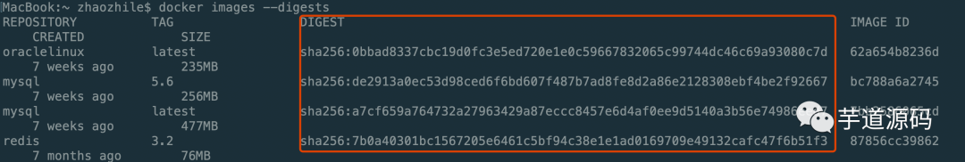 ##显示镜像摘要信息(DIGEST列)