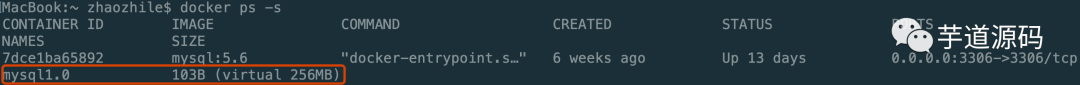 docker ps -s