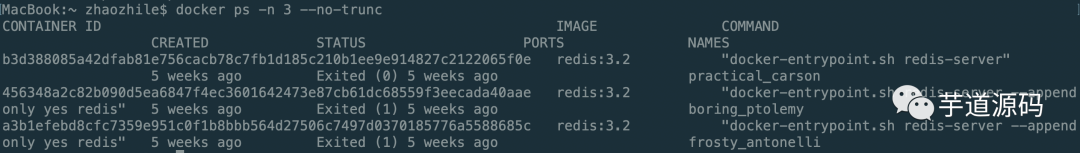 docker ps -n 3
