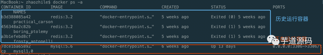 ##查看正在运行+历史运行过的容器