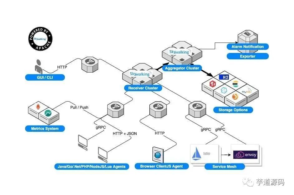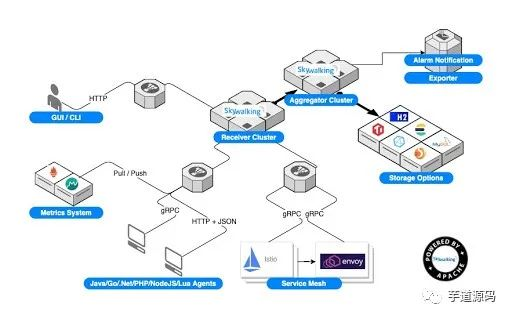 SkyWalking 是一个应用性能监控系统,特别为微服务、云原生和基于容器(Docker, Kubernetes, Mesos)体系结构而设计。除了应用指标监控以外,它还能对分布式调用链路进行追踪。类似功能的组件还有:Zipkin、Pinpoint 、CAT等。