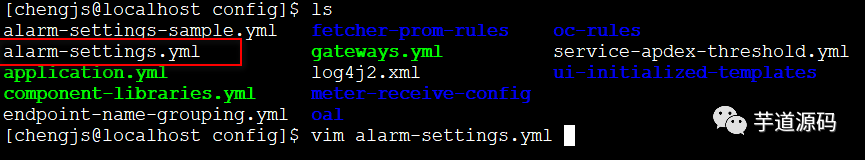 编辑 alarm-settings.yml 设置告警规则和通知
