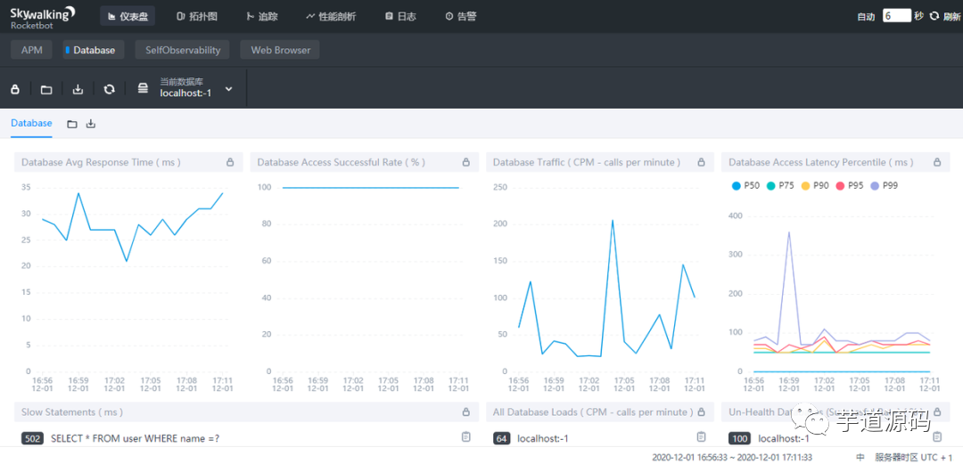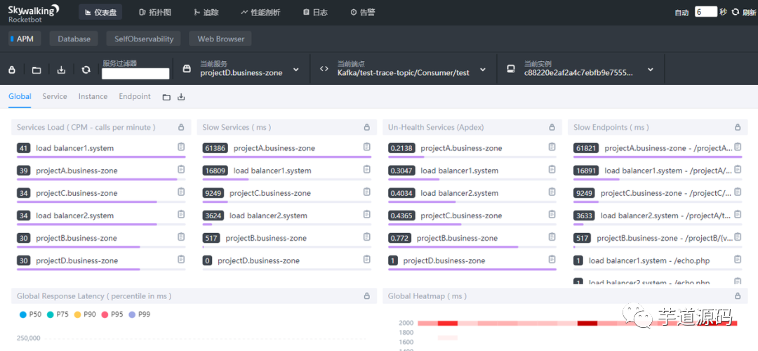 友情提示:想要体验 SkyWalking 的胖友,可以访问地址 http://dashboard.yudao.iocoder.cn/infra/skywalking