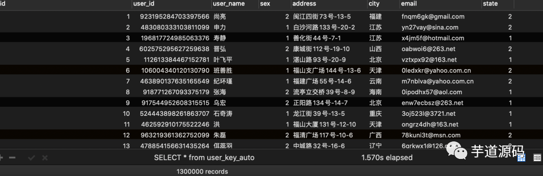 技术框架:springboot+jdbcTemplate+junit+hutool,程序的原理就是连接自己的测试数据库,然后在相同的环境下写入同等数量的数据,来分析一下insert插入的时间来进行综合其效率,为了做到最真实的效果,所有的数据采用随机生成,比如名字、邮箱、地址都是随机生成。