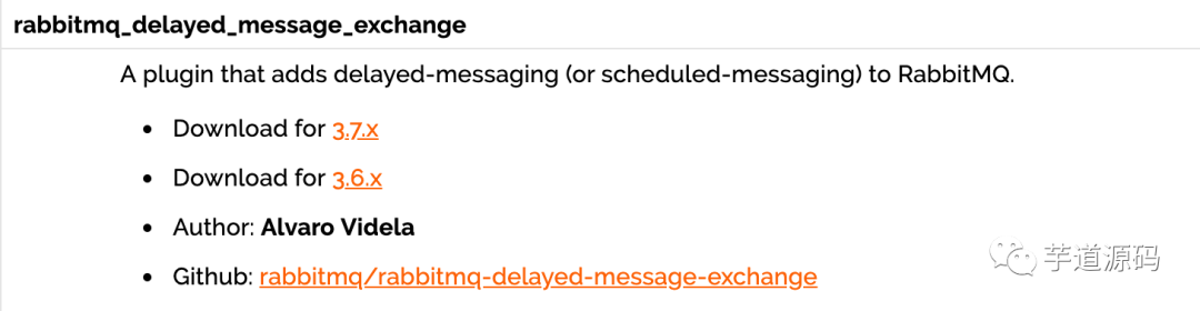 在 RabbitMQ 3.6.x 开始,RabbitMQ 官方提供了延迟队列的插件,可以下载放置到 RabbitMQ 根目录下的 plugins 下。延迟队列插件下载