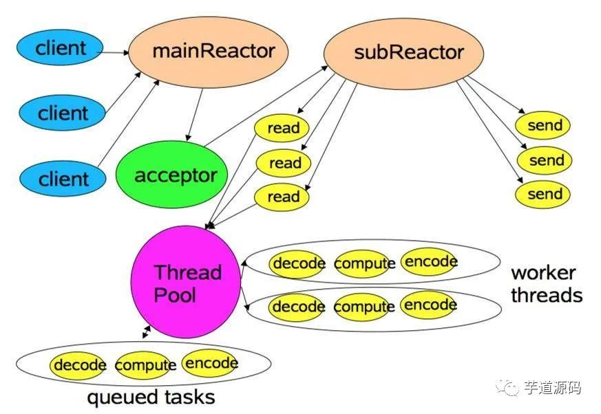 其实Netty的线程模型是Reactor模型的变种,那就是去掉线程池的第三种形式的变种,这也是Netty NIO的默认模式。