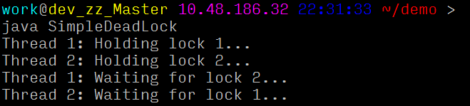 System.out.println("Thread 2: Holding lock 2 & 1...");