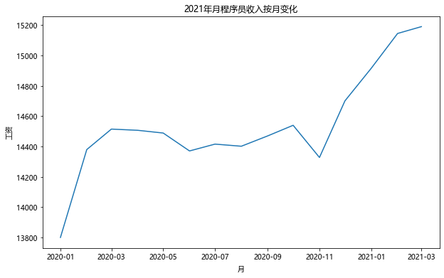2021年3月采集数据124176条。2021年3月全国程序员平均工资15189元,工资中位数12500元,其中95%的人的工资介于5250元到37500元。