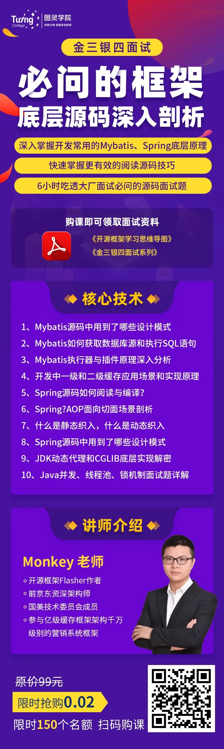 最近我看了一期透彻解析Mybatis底层源码分析的课程,从设计模式、缓存原理、源码分析等方面展开,原价99元,购课限时优惠只需0.02元,扫码即可购课,还附赠一份2021年一线互联网公司面试资料????