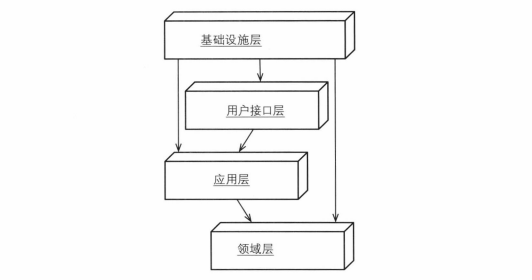 注意:继承分层架构依然是单向依赖,这也意味着领域层、应用层、表现层将不能依赖基础设施层,相反基础设施层可以依赖它们。
