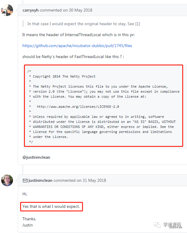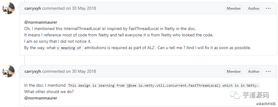 最终 carryxyh 同学说把 Netty 的 FastThreadLocal 的文件头弄过来,是不是就完事了,