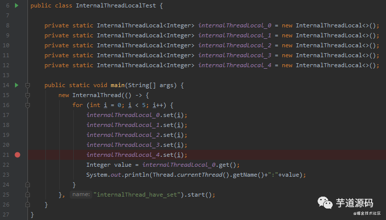 前面我们说了,要用改造版的 ThreadLocal ,必须要配合 InternalThread 线程使用,否则就会退化为原生的 ThreadLocal 。