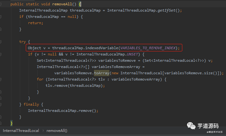 就是 setIndexedVariable 方法返回 true 后,会执行 addToVariablesToRemove 方法。