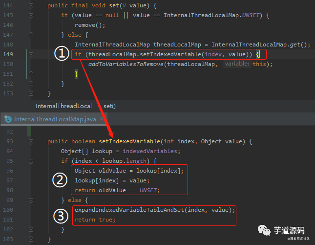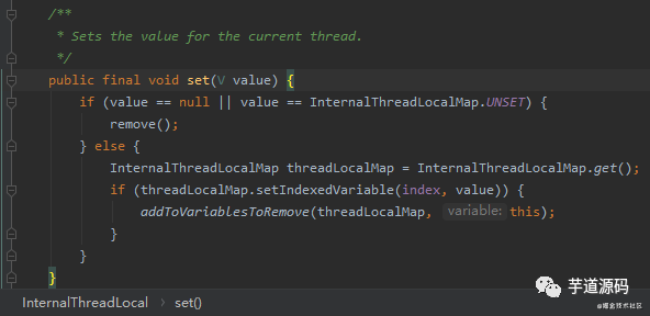 接下来,InternalThreadLocal 的 set 方法只剩下最后一行代码,我们还没说: