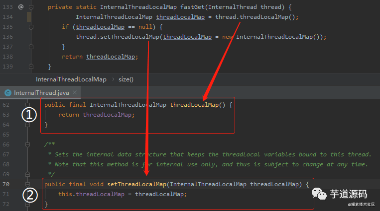 而 InternalThread 这个设计思想是从 Netty 的 FastThreadLocal 中学来的。