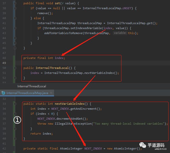 index 每次都是加一,对应的是 InternalThreadLocalMap 里的数组下标。