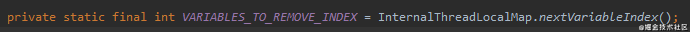 在第 21 行打上断点,然后看一下执行完 addToVariablesToRemove 方法后,InternalThreadLocalMap 数组的情况: