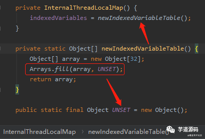 诚不欺你,第 0 个位置上放的是所有的 InternalThreadLocal 的集合。