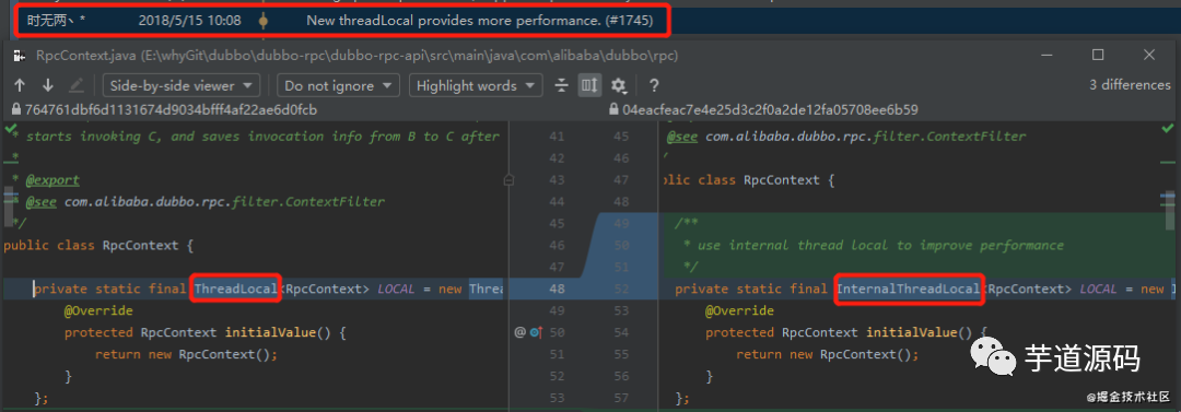所以,我们现在在 Dubbo 的 InternalThreadLocal 文件的最开始,还可以看到这样的 Netty 的说明: