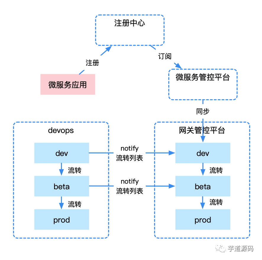 与devops平台配合,在应用发布流转时同步提醒进行api管理的发布流转。