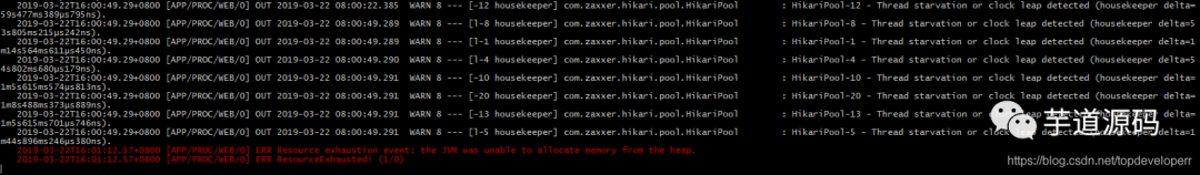 翻译过来的意思就是项目发出了一个资源耗尽的事件,告诉我们java虚拟机无法再为堆分配内存。