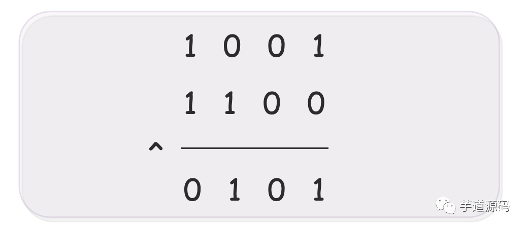 1001 和 1100 的异或结果为 0101。
