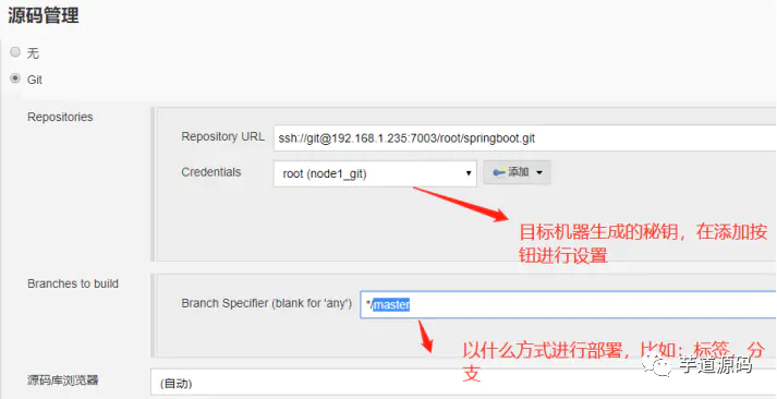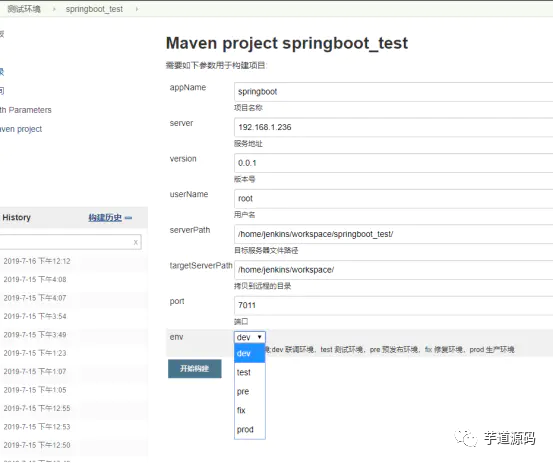 步骤流程几乎一样,唯一是在SSH Publishers 和源码存放路径不一样,测试环境部署目标机器是与Jenkins机器不同一台机器