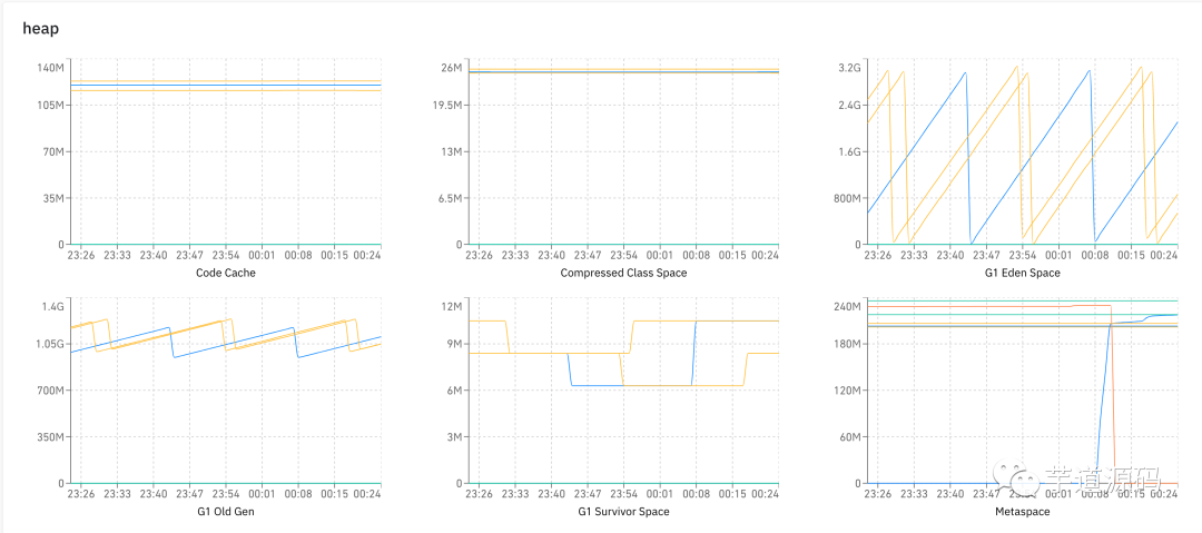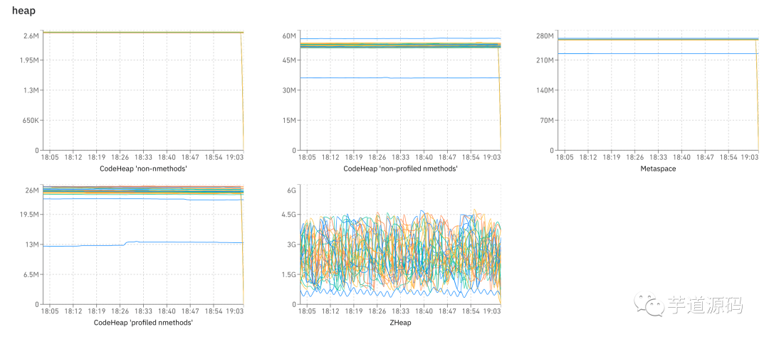 前缀是分类,后缀是图的名称。客户端每分钟收集一次数据进行上报,然后就可以做很多的图了,比如下图展示了在 heap 分类下的各种图: