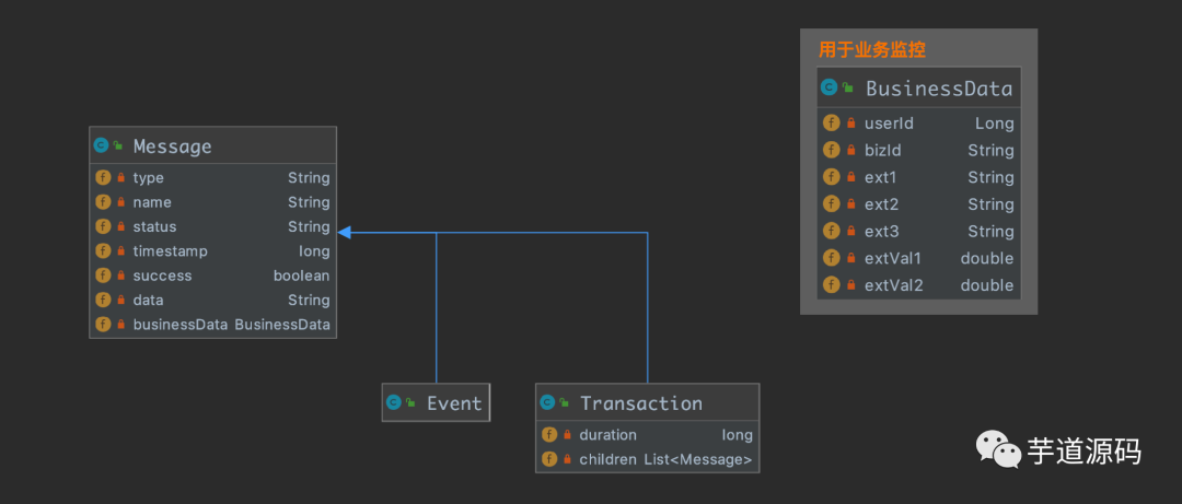 前面我们介绍了 Message 有两个子类 Event 和 Transaction,这里我们再加一个子类 Heartbeat,用来上报心跳数据。