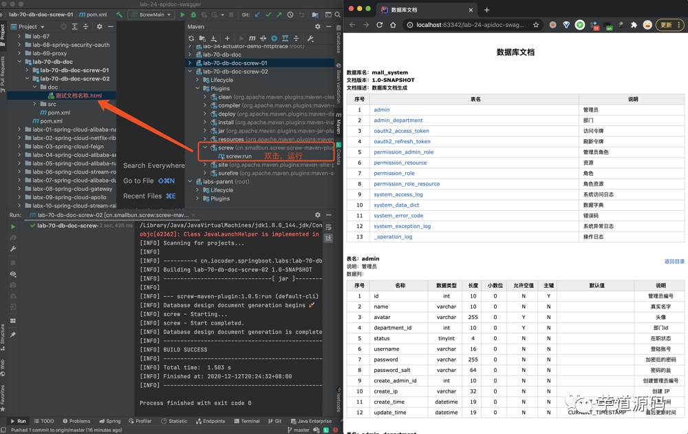 创建 lab-70-db-doc-screw-01 示例项目,使用 screw 的 Java 代码 的方式,生成文档。