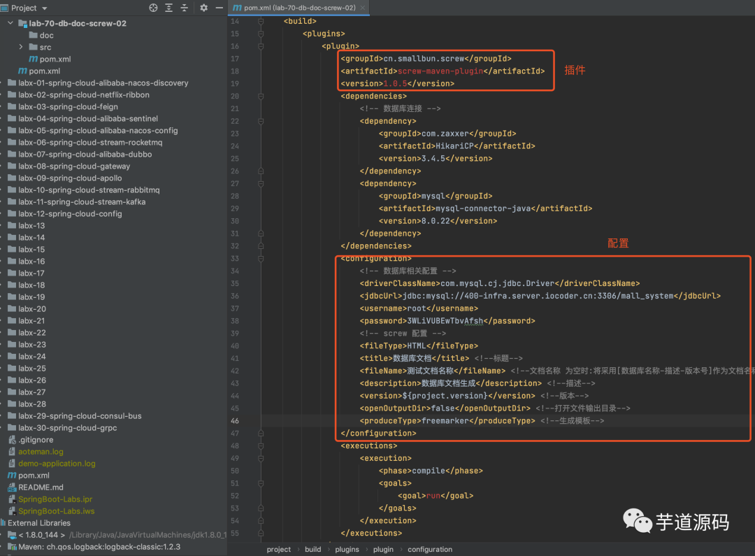 创建 lab-70-db-doc-screw-02 示例项目,使用 screw 的 Maven 插件 的方式,生成文档。
