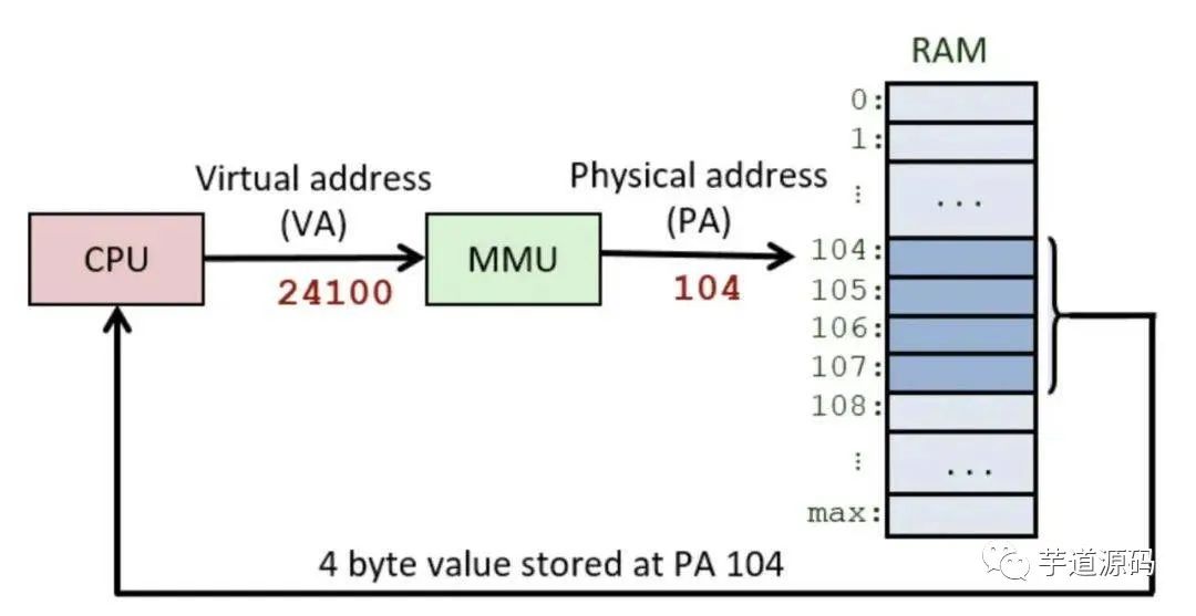 解决的问题:虚拟内存 VA 与物理内存 PA 的映射——通过在 CPU 与内存之间加入 MMU 抽象层,让 CPU 在运行指令时发出的 VA 虚拟地址通过 MMU 转换后变成 PA 物理地址,然后再去访问物理内存。