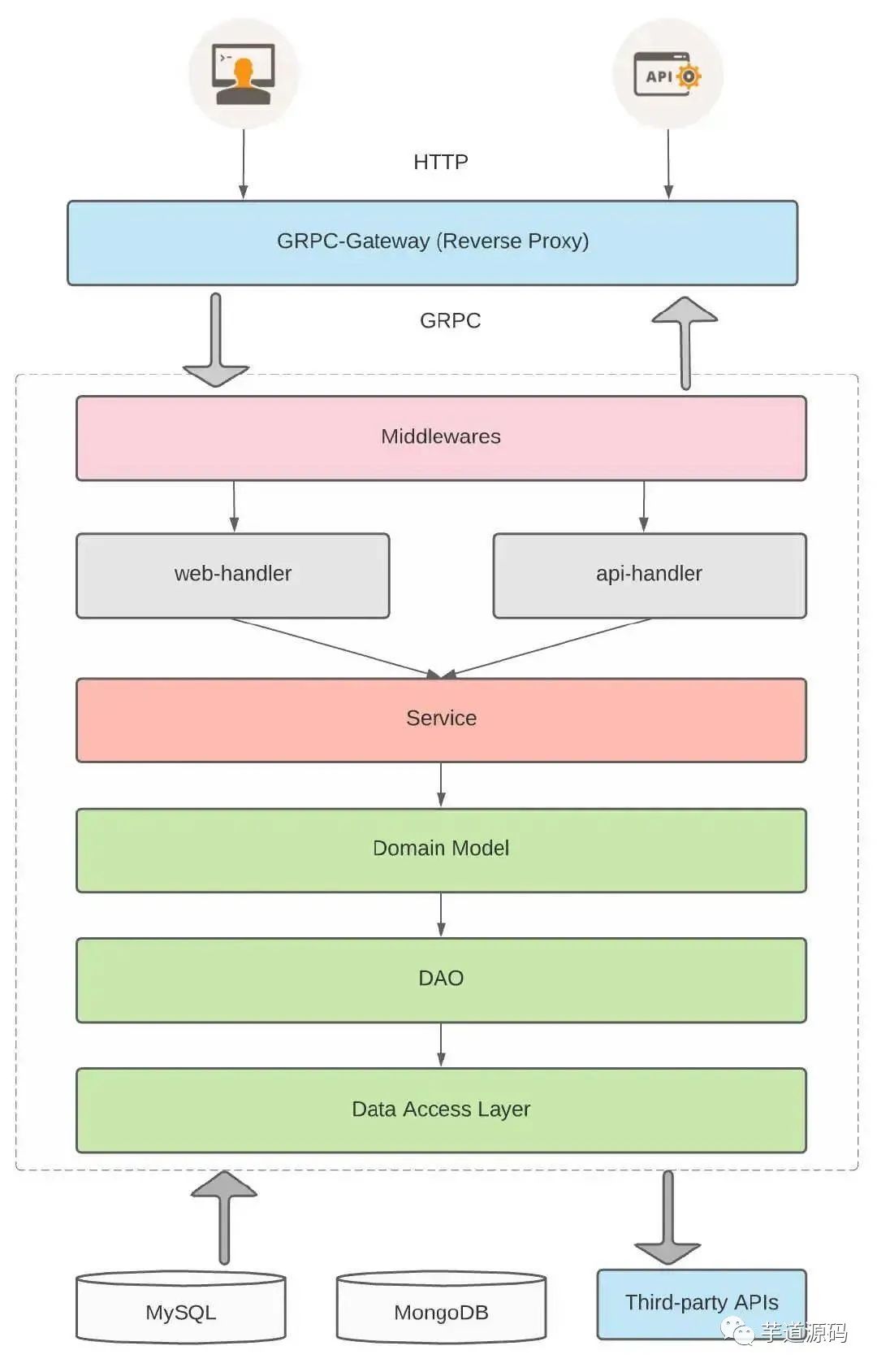 handler 通用处理层 ——参数检验: handler 层负责执行与客户端约定参数的检验, 检验通过后再组装成后端服务需要的数据结构发往后端;接口聚合 / 组合服务: handler 层可以根据业务需要, 调用多个后端服务的 endpoint 来组合实现一个新的接口, 同时将下层返回的数据进行聚合处理.