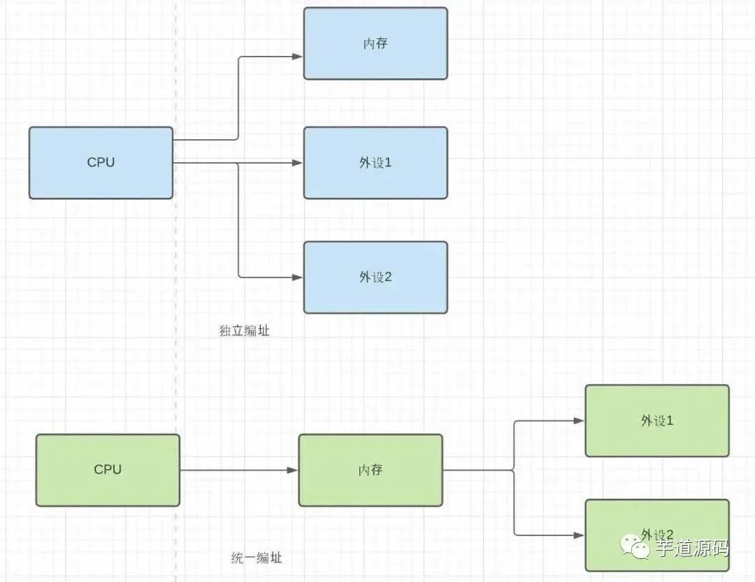 把外设的寄存器当做是一个内存地址,从而 CPU 以类似访问内存相同的方式来操作外设。