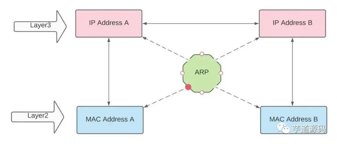 ARP(address resolution protocol) 是地址解析协议,它根据 IP 地址来获取物理地址。上面也谈到,MAC 与 IP 都可以用来标识一台主机。那二者区别是什么?