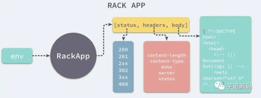 Rack 在 webserver 和应用框架之间提供了一套最小的 API 接口,如果 webserver 都遵循 Rack 提供的这套规则,那么所有的框架都能通过协议任意地改变底层使用 webserver。