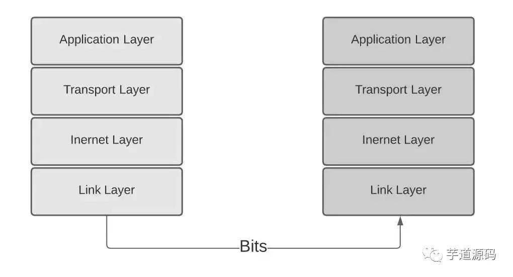 前面铺垫这么久,就是为了自然过渡到上面的图,请务必与 TCP/IP 协议栈进行对比。
