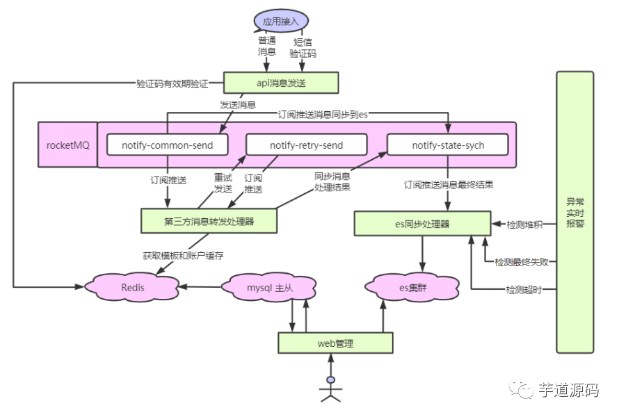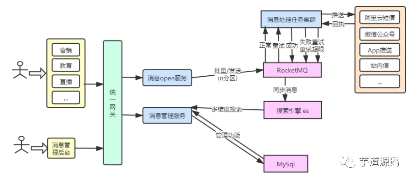 产品目标 : 支持消息处理状态查询,简单的消息规范消息对接(初级开发5分钟实现接入成本),规范化消息模板办理。